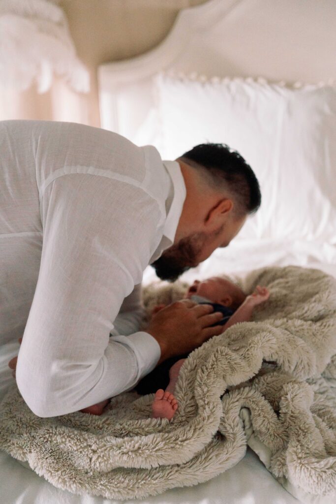 Michael moved in and out of the frame with ease—helping, holding, rocking, and soaking in the beauty of his new little world. There was no need for elaborate setups or stiff posing—just honest, heart-filled moments as they unfolded naturally.